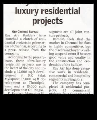 As a reputed builder with a substantial footprint in two of the largest cities in south India, we often find ourselves in the news, for all the right reasons!